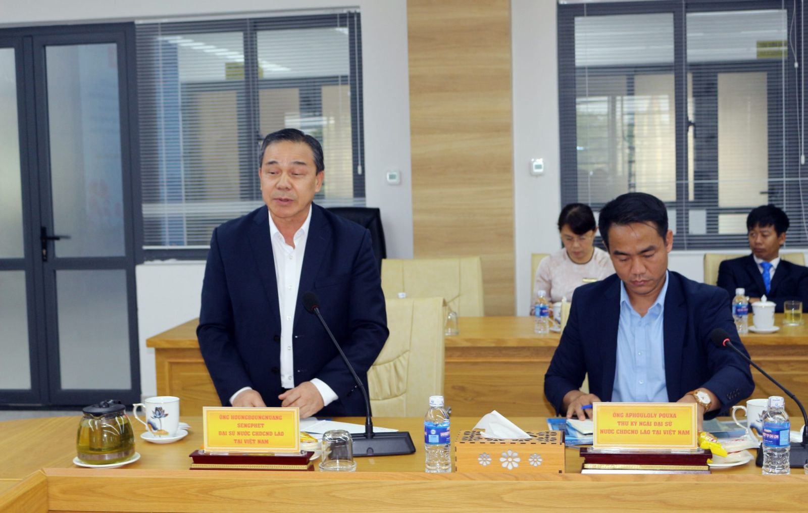 Ngài SENGPHET HOUNGBOUNGNUANG – Đại sứ đặc mệnh toàn quyền nước CHDCND Lào phát biểu tại buổi làm việc