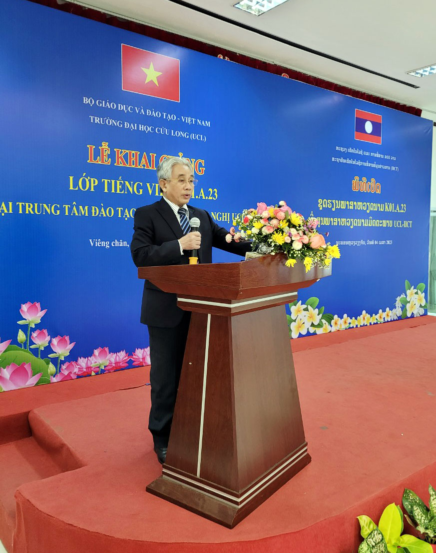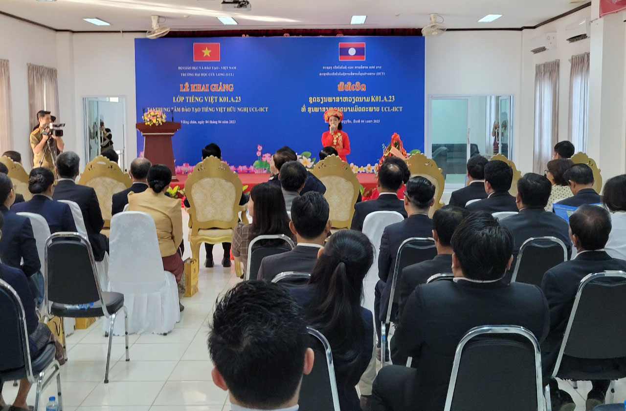 Sáng ngày 04/4/2023, Trung tâm đào tạo tiếng Việt Hữu nghị UCL- IICT tại Thủ đô Vientiane do Trường ĐH Cửu Long (ĐHCL) phối hợp với Viện Công nghệ Thông tin và Truyền thông, Vụ Đổi mới và Công nghệ (Bộ CN&TT Lào) tổ chức khai giảng lớp học tiếng Việt khóa K01.A.23 năm 2023.