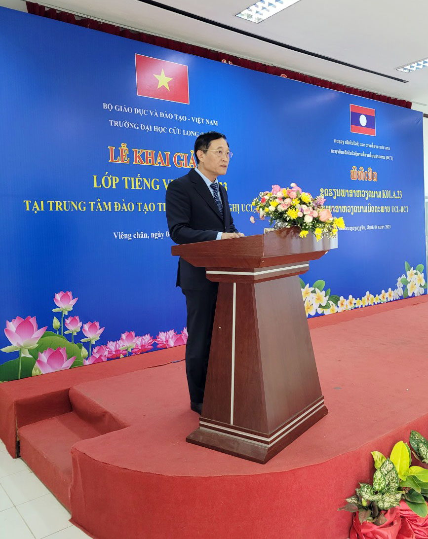 Phát biểu tại lễ khai giảng, Nhà giáo ưu tú, PGS. TS Lương Minh Cừ – Bí thư Đảng ủy, Hiệu trưởng Trường ĐHCL khẳng định: Trường ĐHCL là một trường ĐH đang trên đà phát triển mạnh mẽ, là trung tâm đào tạo ĐH, sau ĐH có uy tín tại Việt Nam. Trường hiện có 12.000 sinh viên, trên 650 cán bộ, giảng viên là giáo sư, tiến sĩ, thạc sĩ…Trong đó có nhiều giáo sư đến từ Nhật Bản, Đài Loan, Hàn Quốc, Thái Lan… tham gia giảng dạy tại trường. Đến nay, trường đã đào tạo và cấp bằng gần 30.000 cử nhân, kỹ sư, thạc sĩ cho Việt Nam và các nước bạn như Lào, Campuchia…Trong nhiều năm qua, Trường ĐHCL đặc biệt quan tâm đến hợp tác đào tạo với nước bạn Lào trên tinh thần đoàn kết hữu nghị đặc biệt. Tại Việt Nam, nhà trường cũng đã quan tâm đào tạo, chăm sóc các em lưu học sinh Lào một cách đặc biệt. Với sự giúp đỡ của Bộ Công nghệ và Truyền thông Lào, Bộ Giáo dục và Thể thao Lào, tháng 9/2022 Trung tâm đào tạo tiếng Việt hữu nghị UCL – IICT được thành lập và chính thức đi vào hoạt động. Sau thời gian chuẩn bị tích cực, chu đáo, hôm nay Trung tâm đã khai giảng lớp học tiếng Việt đầu tiên với 45 anh chị tham gia học…